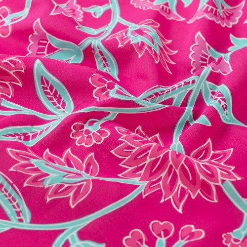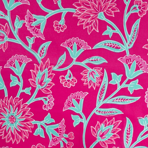 ENJOY COTONE VOILE GRANDI FIORI ACQUA E FUCSIA SU BASE FUCSIA