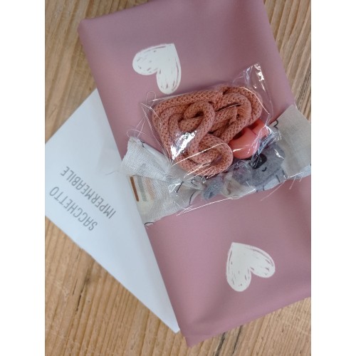 KIT SACCHETTO IN AQUA PROTECT CUORI BIANCHI BASE CIPOLLA PASTELLO